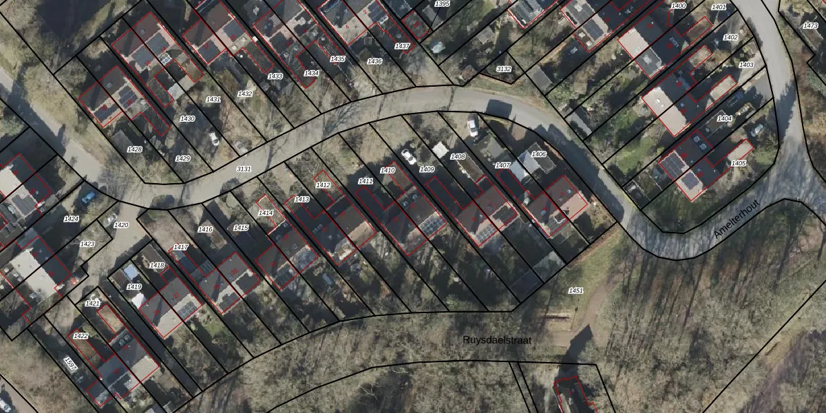 Het perceel waarop Amelterhout 11 staat heeft een oppervlakte van 418 m². Dit is een groot perceel. De perceeloppervlakte wordt geregistreerd door het Kadaster. Gedetailleerde informatie over de maten van dit perceel kunt u vinden in het rapport Kadastrale kaart met maatvoering van Amelterhout 11.