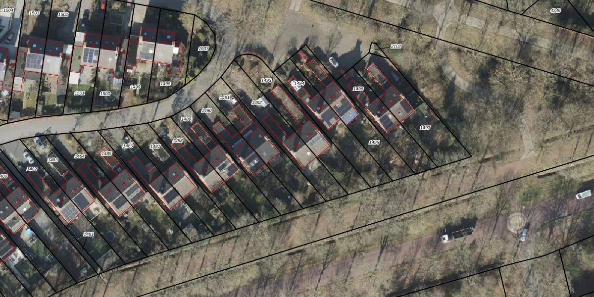 Gebruik de zoekbalk of klik op een perceel voor informatie over de adressen binnen dit perceel.