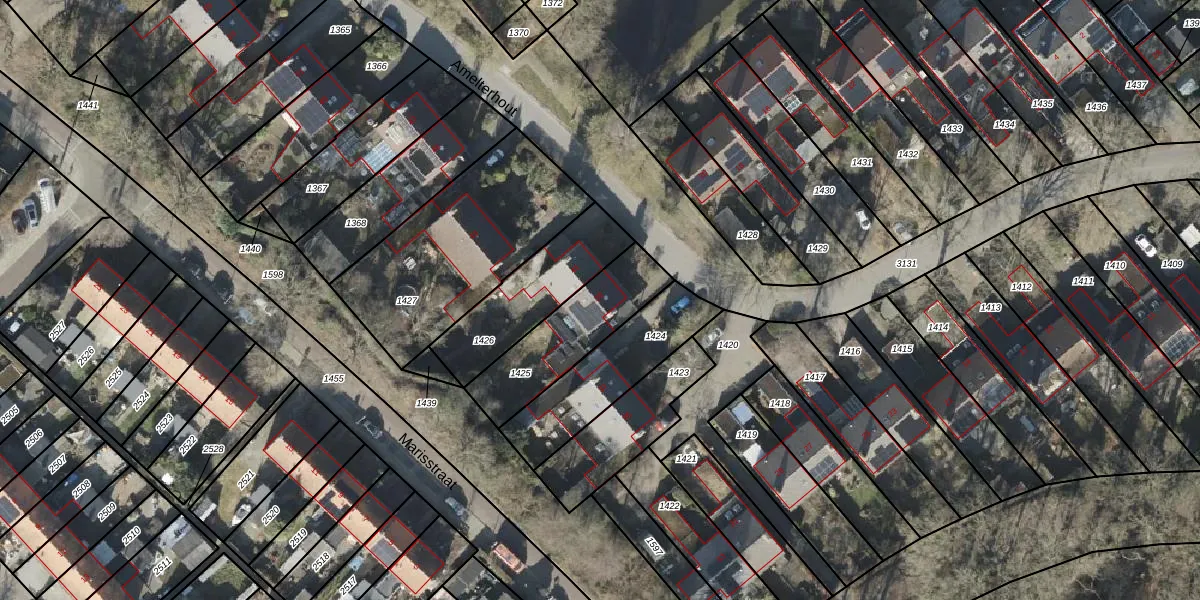 Het perceel waarop Amelterhout 39 staat heeft een oppervlakte van 345 m². Dit is een groot perceel. De perceeloppervlakte wordt geregistreerd door het Kadaster. Gedetailleerde informatie over de maten van dit perceel kunt u vinden in het rapport Kadastrale kaart met maatvoering van Amelterhout 39.