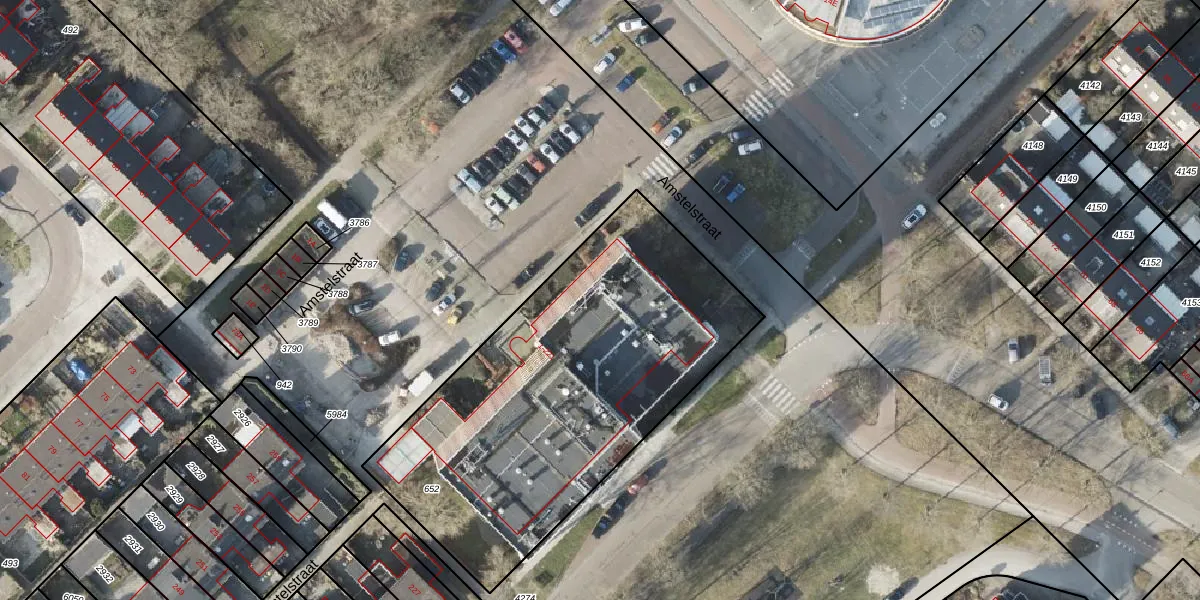 Het perceel waarop Amstelstraat 121 staat heeft een oppervlakte van 1957 m². Dit is een zeer groot perceel. De perceeloppervlakte wordt geregistreerd door het Kadaster. Gedetailleerde informatie over de maten van dit perceel kunt u vinden in het rapport Kadastrale kaart met maatvoering van Amstelstraat 121.