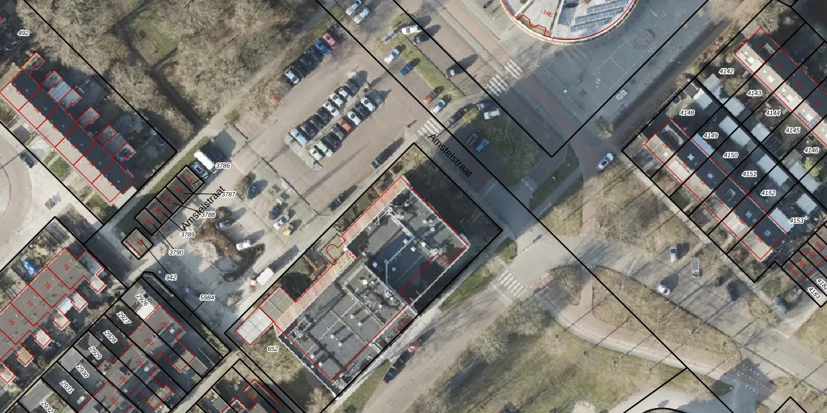 Het perceel waarop Amstelstraat 175 staat heeft een oppervlakte van 1957 m². Dit is een zeer groot perceel. De perceeloppervlakte wordt geregistreerd door het Kadaster. Gedetailleerde informatie over de maten van dit perceel kunt u vinden in het rapport Kadastrale kaart met maatvoering van Amstelstraat 175.