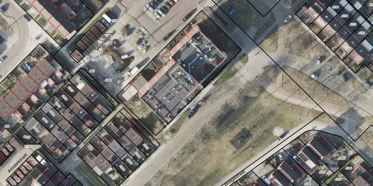 Het perceel waarop Amstelstraat 29 staat heeft een oppervlakte van 1957 m². Dit is een zeer groot perceel. De perceeloppervlakte wordt geregistreerd door het Kadaster. Gedetailleerde informatie over de maten van dit perceel kunt u vinden in het rapport Kadastrale kaart met maatvoering van Amstelstraat 29.