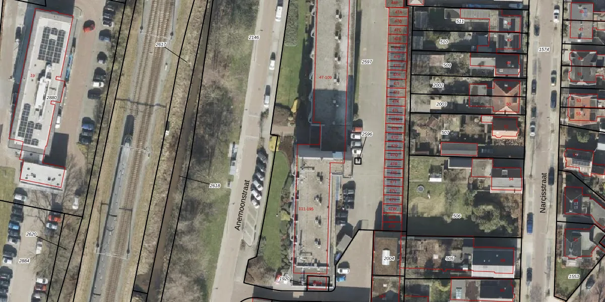 Het perceel waarop Anemoonstraat 115 staat heeft een oppervlakte van 6635 m². Dit is een zeer groot perceel. De perceeloppervlakte wordt geregistreerd door het Kadaster. Gedetailleerde informatie over de maten van dit perceel kunt u vinden in het rapport Kadastrale kaart met maatvoering van Anemoonstraat 115.