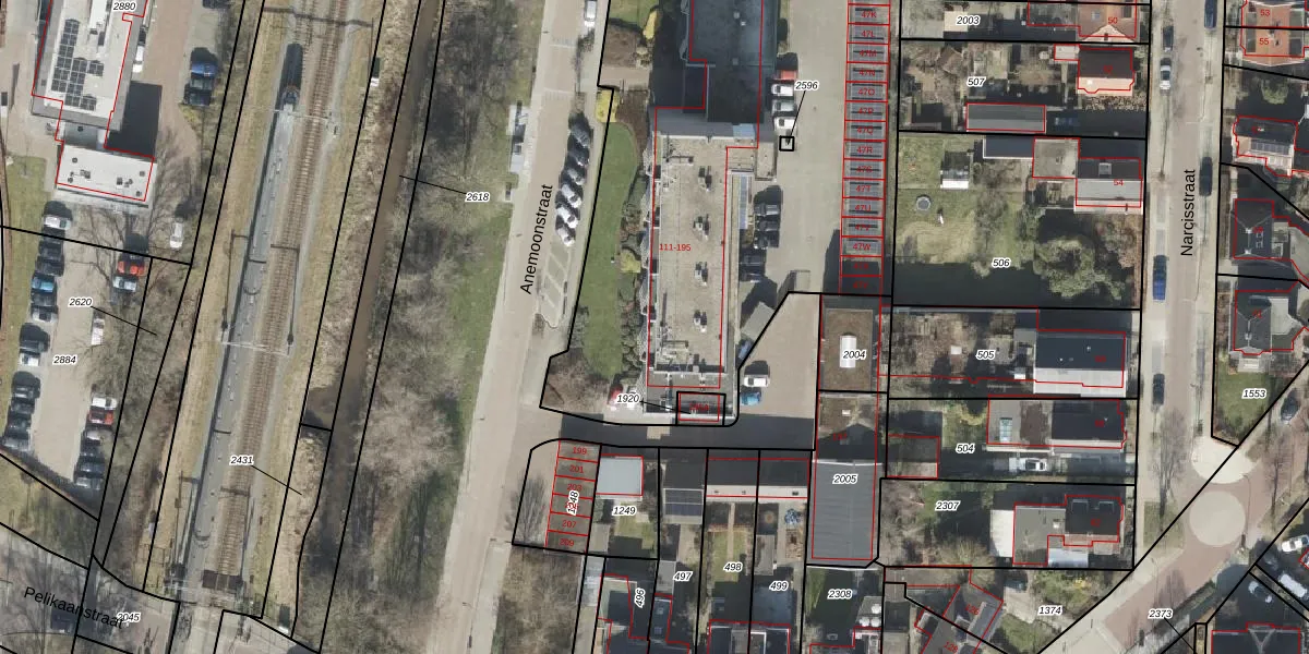 Het perceel waarop Anemoonstraat 123 staat heeft een oppervlakte van 6635 m². Dit is een zeer groot perceel. De perceeloppervlakte wordt geregistreerd door het Kadaster. Gedetailleerde informatie over de maten van dit perceel kunt u vinden in het rapport Kadastrale kaart met maatvoering van Anemoonstraat 123.