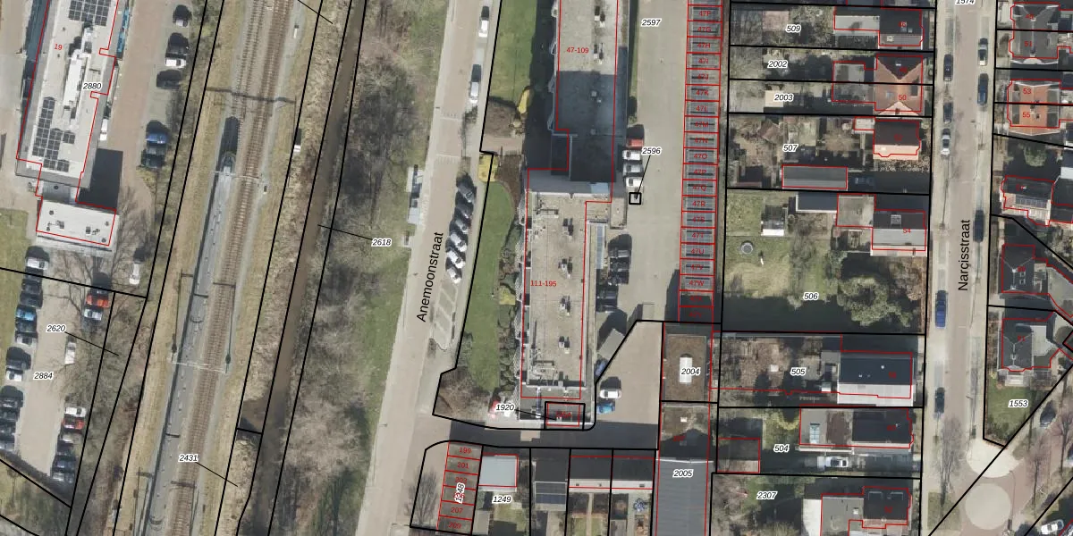 Het perceel waarop Anemoonstraat 131 staat heeft een oppervlakte van 6635 m². Dit is een zeer groot perceel. De perceeloppervlakte wordt geregistreerd door het Kadaster. Gedetailleerde informatie over de maten van dit perceel kunt u vinden in het rapport Kadastrale kaart met maatvoering van Anemoonstraat 131.