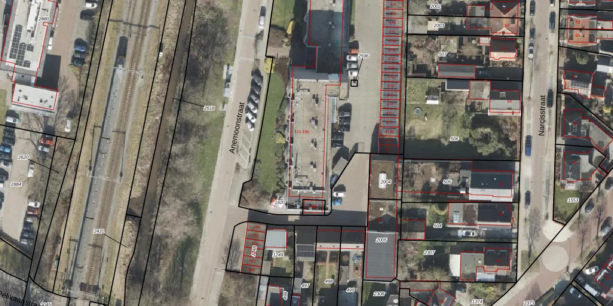 Het perceel waarop Anemoonstraat 157 staat heeft een oppervlakte van 6635 m². Dit is een zeer groot perceel. De perceeloppervlakte wordt geregistreerd door het Kadaster. Gedetailleerde informatie over de maten van dit perceel kunt u vinden in het rapport Kadastrale kaart met maatvoering van Anemoonstraat 157.