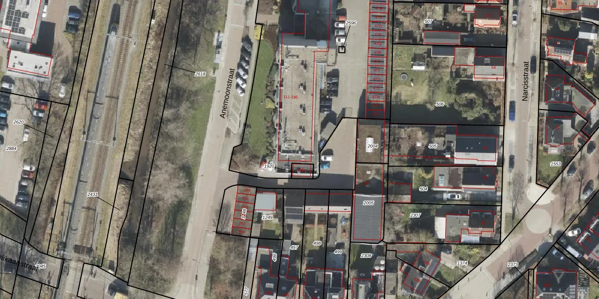Het perceel waarop Anemoonstraat 173 staat heeft een oppervlakte van 6635 m². Dit is een zeer groot perceel. De perceeloppervlakte wordt geregistreerd door het Kadaster. Gedetailleerde informatie over de maten van dit perceel kunt u vinden in het rapport Kadastrale kaart met maatvoering van Anemoonstraat 173.
