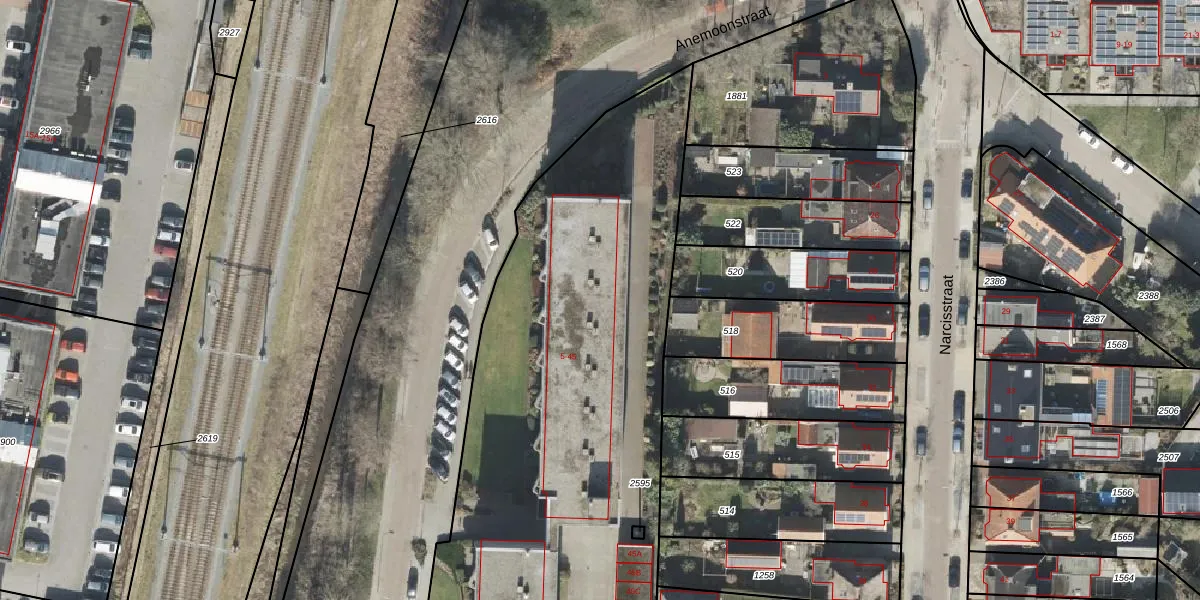 Het perceel waarop Anemoonstraat 41 staat heeft een oppervlakte van 6635 m². Dit is een zeer groot perceel. De perceeloppervlakte wordt geregistreerd door het Kadaster. Gedetailleerde informatie over de maten van dit perceel kunt u vinden in het rapport Kadastrale kaart met maatvoering van Anemoonstraat 41.