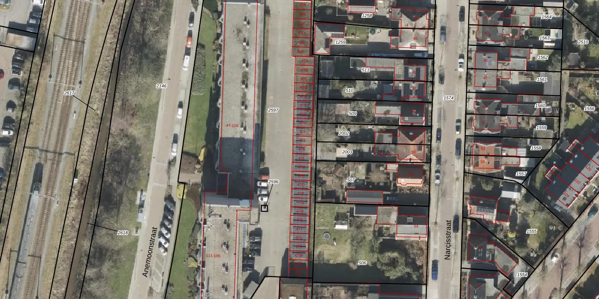 Anemoonstraat 47-K is gelegen op kadastraal perceel ASN00V2597. Deze kadastrale aanduiding is uniek en wordt gebruikt door het Kadaster om eigendomsrechten en andere zakelijke rechten vast te leggen. Het perceel maakt onderdeel uit van de kadastrale gemeente Assen.