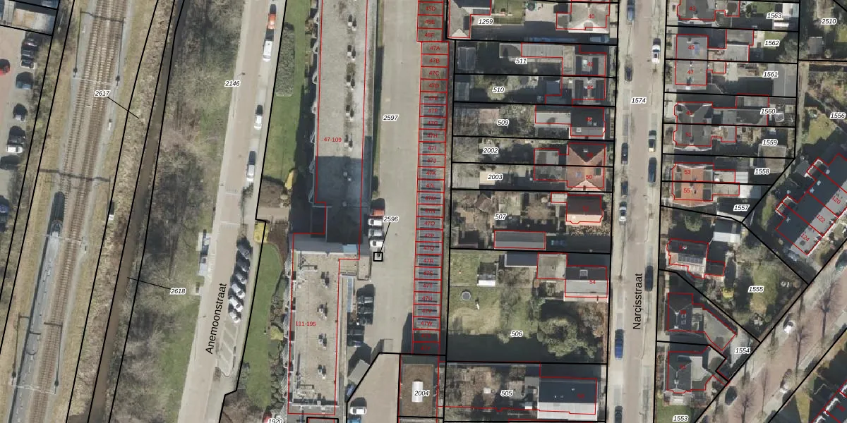 Het perceel waarop Anemoonstraat 47-N staat heeft een oppervlakte van 6635 m². Dit is een zeer groot perceel. De perceeloppervlakte wordt geregistreerd door het Kadaster. Gedetailleerde informatie over de maten van dit perceel kunt u vinden in het rapport Kadastrale kaart met maatvoering van Anemoonstraat 47-N.