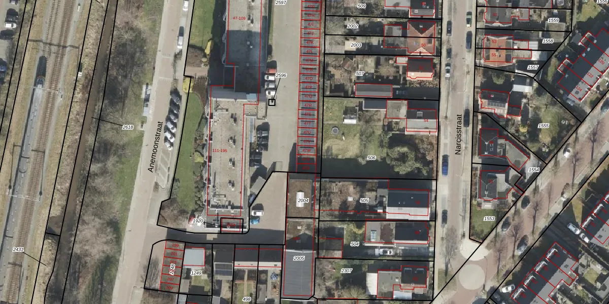 Het perceel waarop Anemoonstraat 47-W staat heeft een oppervlakte van 6635 m². Dit is een zeer groot perceel. De perceeloppervlakte wordt geregistreerd door het Kadaster. Gedetailleerde informatie over de maten van dit perceel kunt u vinden in het rapport Kadastrale kaart met maatvoering van Anemoonstraat 47-W.
