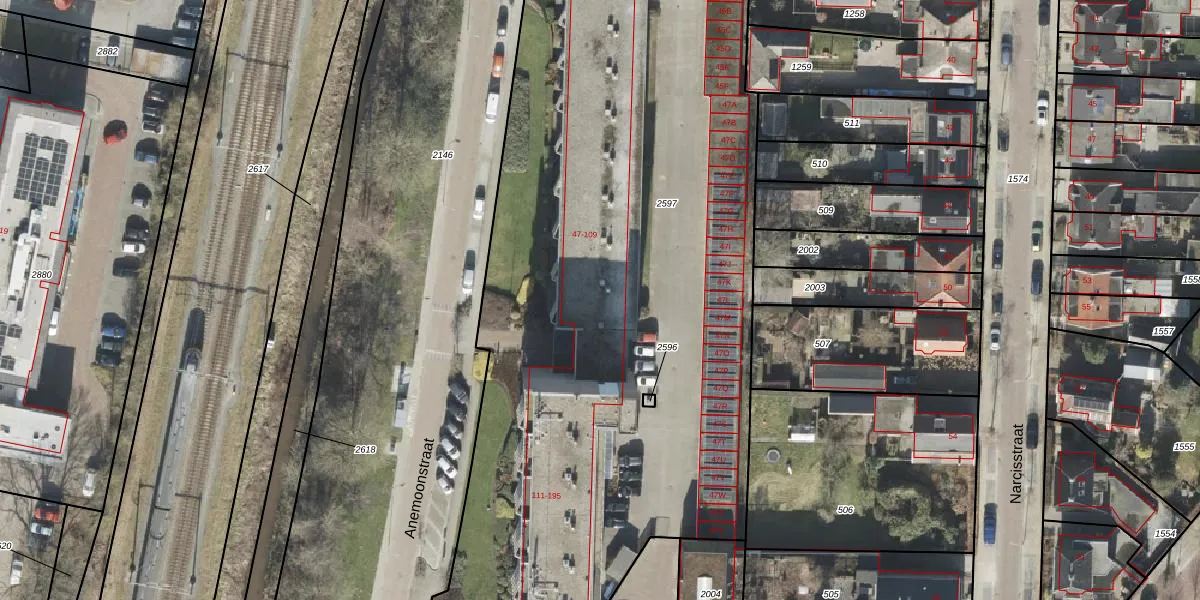Het perceel waarop Anemoonstraat 79 staat heeft een oppervlakte van 6635 m². Dit is een zeer groot perceel. De perceeloppervlakte wordt geregistreerd door het Kadaster. Gedetailleerde informatie over de maten van dit perceel kunt u vinden in het rapport Kadastrale kaart met maatvoering van Anemoonstraat 79.