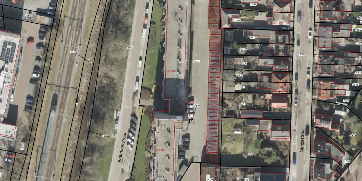 Het perceel waarop Anemoonstraat 95 staat heeft een oppervlakte van 6635 m². Dit is een zeer groot perceel. De perceeloppervlakte wordt geregistreerd door het Kadaster. Gedetailleerde informatie over de maten van dit perceel kunt u vinden in het rapport Kadastrale kaart met maatvoering van Anemoonstraat 95.