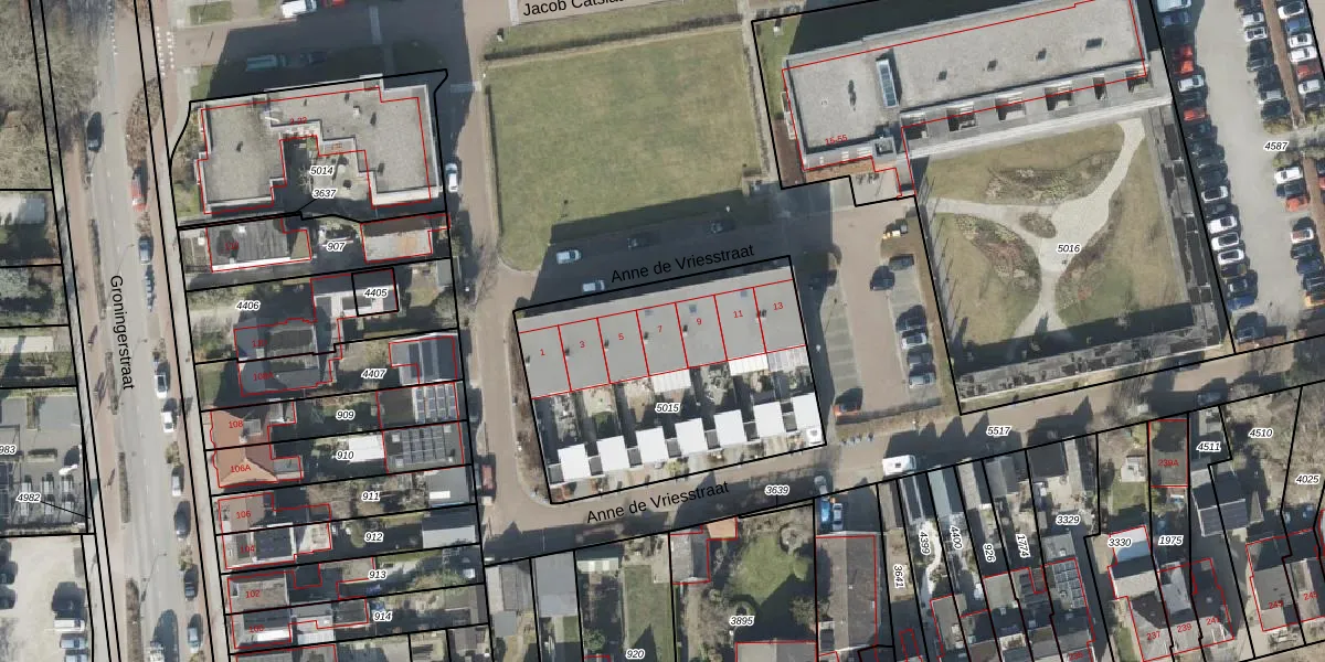 Anne de Vriesstraat 7 is gelegen op kadastraal perceel ASN00T5015. Deze kadastrale aanduiding is uniek en wordt gebruikt door het Kadaster om eigendomsrechten en andere zakelijke rechten vast te leggen. Het perceel maakt onderdeel uit van de kadastrale gemeente Assen.
