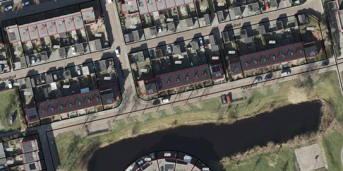 Het perceel waarop Appelhof 59 staat heeft een oppervlakte van 948 m². Dit is een groot perceel. De perceeloppervlakte wordt geregistreerd door het Kadaster. Gedetailleerde informatie over de maten van dit perceel kunt u vinden in het rapport Kadastrale kaart met maatvoering van Appelhof 59.