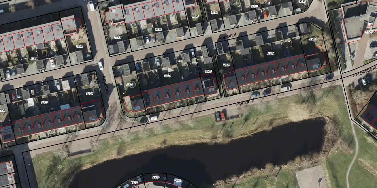 Het perceel waarop Appelhof 65 staat heeft een oppervlakte van 948 m². Dit is een groot perceel. De perceeloppervlakte wordt geregistreerd door het Kadaster. Gedetailleerde informatie over de maten van dit perceel kunt u vinden in het rapport Kadastrale kaart met maatvoering van Appelhof 65.