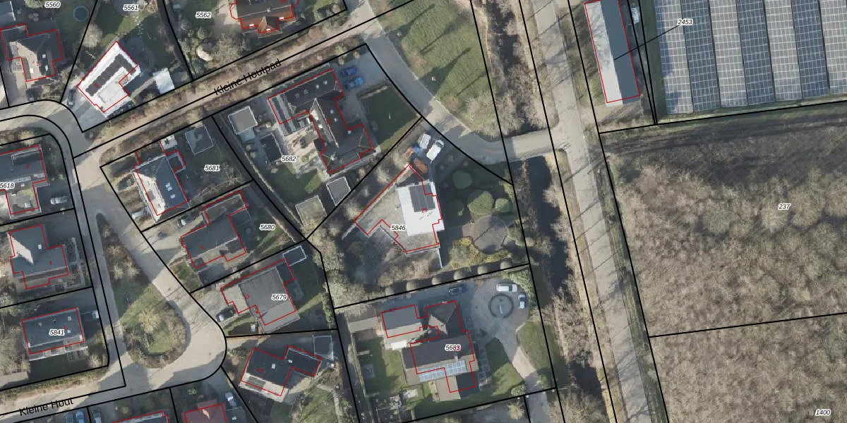 Gebruik de zoekbalk of klik op een perceel voor informatie over de adressen binnen dit perceel.