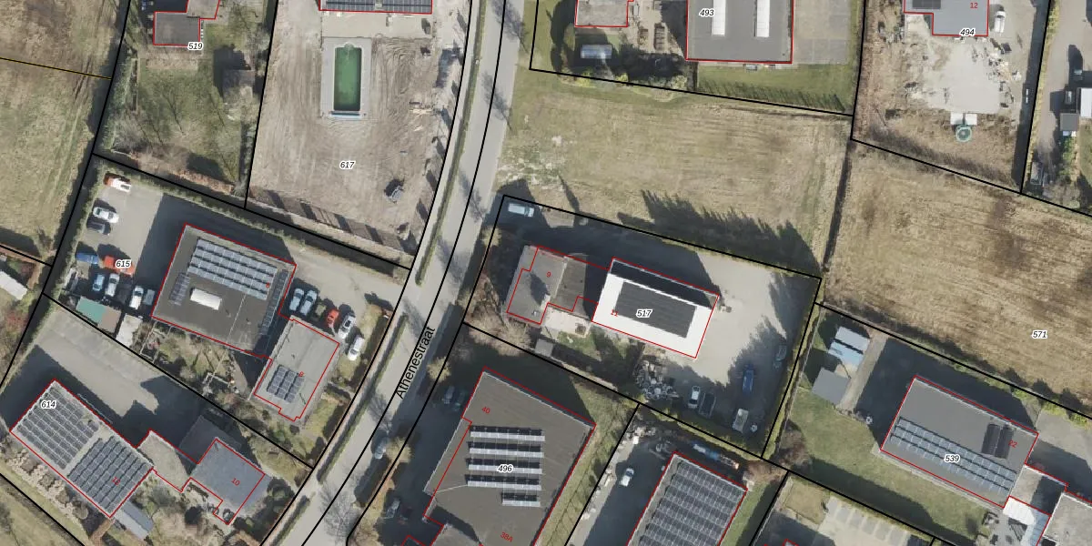 Het perceel waarop Athenestraat 9 staat heeft een oppervlakte van 1778 m². Dit is een zeer groot perceel. De perceeloppervlakte wordt geregistreerd door het Kadaster. Gedetailleerde informatie over de maten van dit perceel kunt u vinden in het rapport Kadastrale kaart met maatvoering van Athenestraat 9.