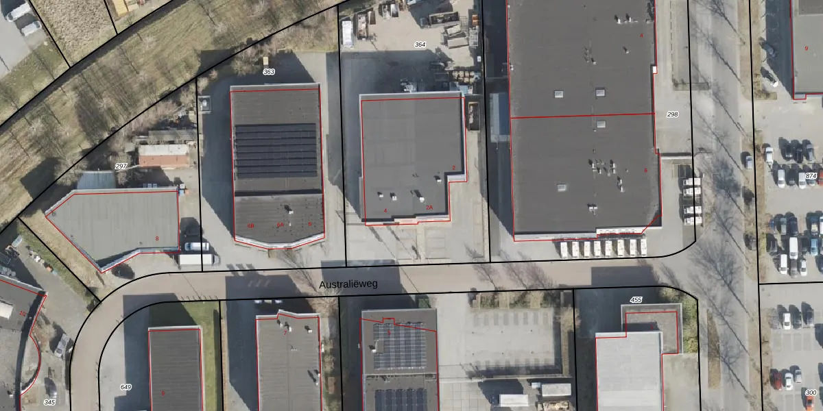 Het perceel waarop Australiëweg 2-A staat heeft een oppervlakte van 2428 m². Dit is een zeer groot perceel. De perceeloppervlakte wordt geregistreerd door het Kadaster. Gedetailleerde informatie over de maten van dit perceel kunt u vinden in het rapport Kadastrale kaart met maatvoering van Australiëweg 2-A.