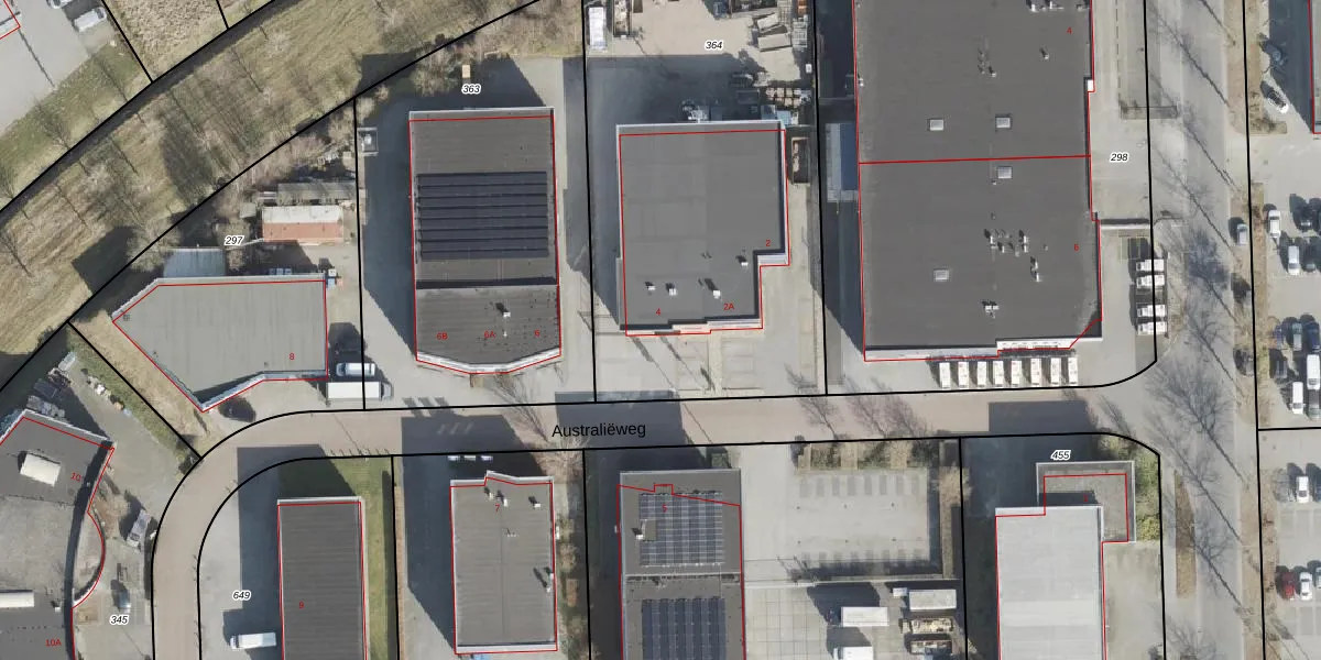 Het perceel waarop Australiëweg 4 staat heeft een oppervlakte van 2428 m². Dit is een zeer groot perceel. De perceeloppervlakte wordt geregistreerd door het Kadaster. Gedetailleerde informatie over de maten van dit perceel kunt u vinden in het rapport Kadastrale kaart met maatvoering van Australiëweg 4.