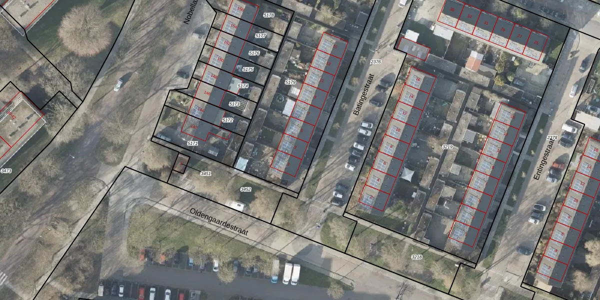 Het perceel waarop Batingestraat 3 staat heeft een oppervlakte van 2826 m². Dit is een zeer groot perceel. De perceeloppervlakte wordt geregistreerd door het Kadaster. Gedetailleerde informatie over de maten van dit perceel kunt u vinden in het rapport Kadastrale kaart met maatvoering van Batingestraat 3.
