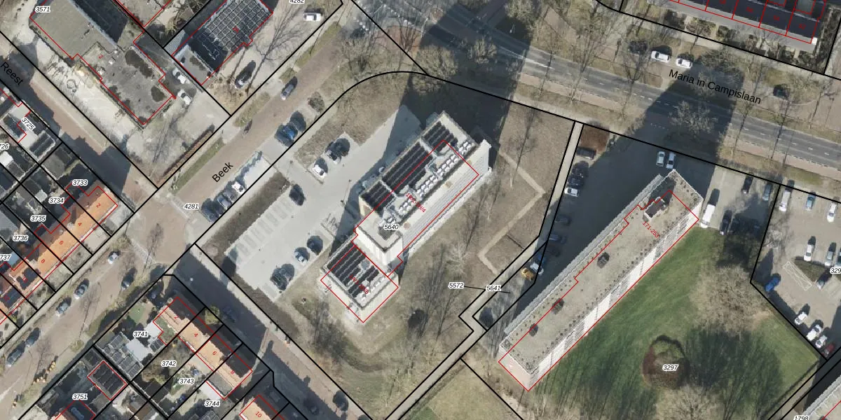 Het perceel waarop Beek 1-D-3 staat heeft een oppervlakte van 4282 m². Dit is een zeer groot perceel. De perceeloppervlakte wordt geregistreerd door het Kadaster. Gedetailleerde informatie over de maten van dit perceel kunt u vinden in het rapport Kadastrale kaart met maatvoering van Beek 1-D-3.