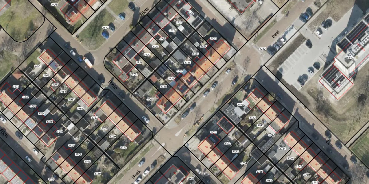 Gebruik de zoekbalk of klik op een perceel voor informatie over de adressen binnen dit perceel.