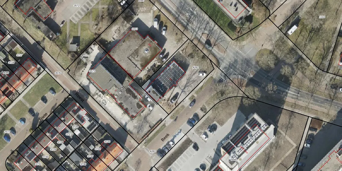 Gebruik de zoekbalk of klik op een perceel voor informatie over de adressen binnen dit perceel.