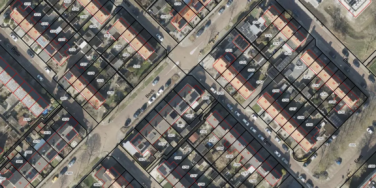 Gebruik de zoekbalk of klik op een perceel voor informatie over de adressen binnen dit perceel.