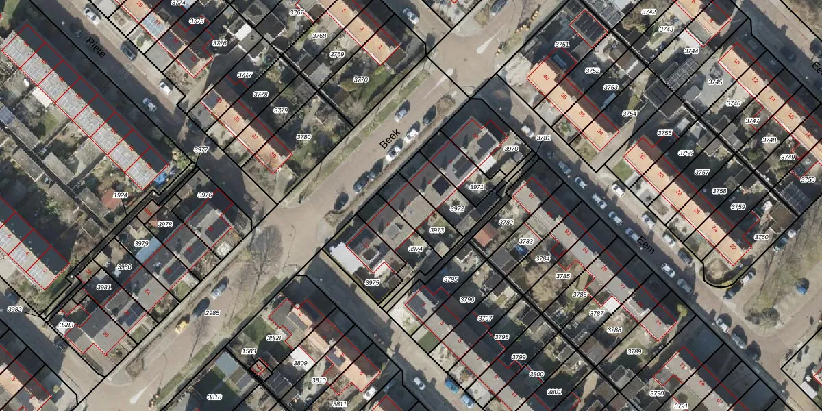 Het perceel waarop Beek 7 staat heeft een oppervlakte van 165 m². Dit is een middelgroot perceel. De perceeloppervlakte wordt geregistreerd door het Kadaster. Gedetailleerde informatie over de maten van dit perceel kunt u vinden in het rapport Kadastrale kaart met maatvoering van Beek 7.