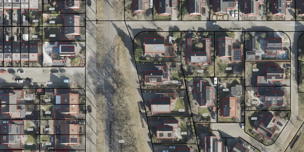 Gebruik de zoekbalk of klik op een perceel voor informatie over de adressen binnen dit perceel.