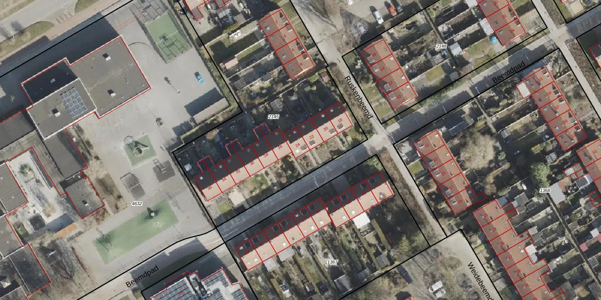 Het perceel waarop Beemdpad 24 staat heeft een oppervlakte van 3323 m². Dit is een zeer groot perceel. De perceeloppervlakte wordt geregistreerd door het Kadaster. Gedetailleerde informatie over de maten van dit perceel kunt u vinden in het rapport Kadastrale kaart met maatvoering van Beemdpad 24.