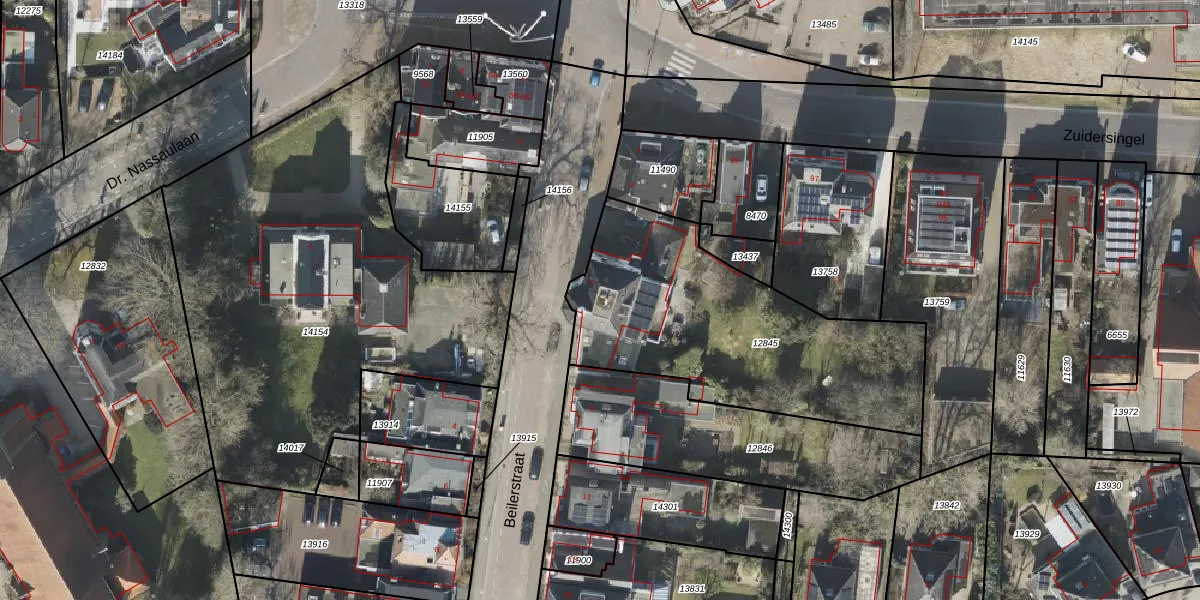 Gebruik de zoekbalk of klik op een perceel voor informatie over de adressen binnen dit perceel.