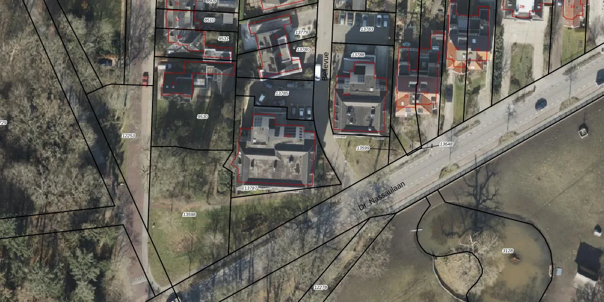 Het perceel waarop Bellevue 17 staat heeft een oppervlakte van 843 m². Dit is een groot perceel. De perceeloppervlakte wordt geregistreerd door het Kadaster. Gedetailleerde informatie over de maten van dit perceel kunt u vinden in het rapport Kadastrale kaart met maatvoering van Bellevue 17.