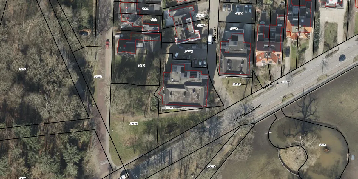 Het perceel waarop Bellevue 19 staat heeft een oppervlakte van 843 m². Dit is een groot perceel. De perceeloppervlakte wordt geregistreerd door het Kadaster. Gedetailleerde informatie over de maten van dit perceel kunt u vinden in het rapport Kadastrale kaart met maatvoering van Bellevue 19.