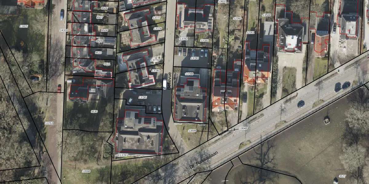 Het perceel waarop Bellevue 2 staat heeft een oppervlakte van 616 m². Dit is een groot perceel. De perceeloppervlakte wordt geregistreerd door het Kadaster. Gedetailleerde informatie over de maten van dit perceel kunt u vinden in het rapport Kadastrale kaart met maatvoering van Bellevue 2.