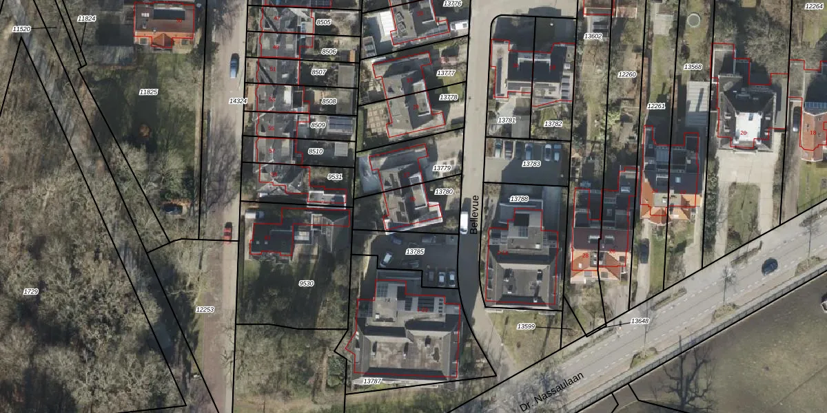 Het perceel waarop Bellevue 25 staat heeft een oppervlakte van 283 m². Dit is een middelgroot perceel. De perceeloppervlakte wordt geregistreerd door het Kadaster. Gedetailleerde informatie over de maten van dit perceel kunt u vinden in het rapport Kadastrale kaart met maatvoering van Bellevue 25.
