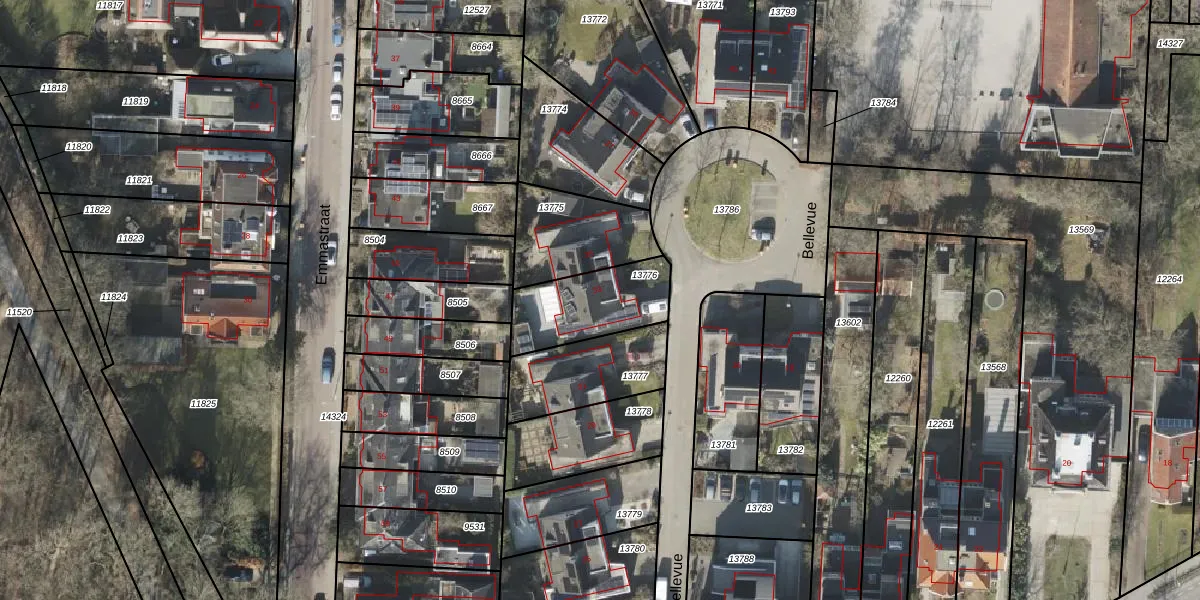 Het perceel waarop Bellevue 33 staat heeft een oppervlakte van 290 m². Dit is een middelgroot perceel. De perceeloppervlakte wordt geregistreerd door het Kadaster. Gedetailleerde informatie over de maten van dit perceel kunt u vinden in het rapport Kadastrale kaart met maatvoering van Bellevue 33.