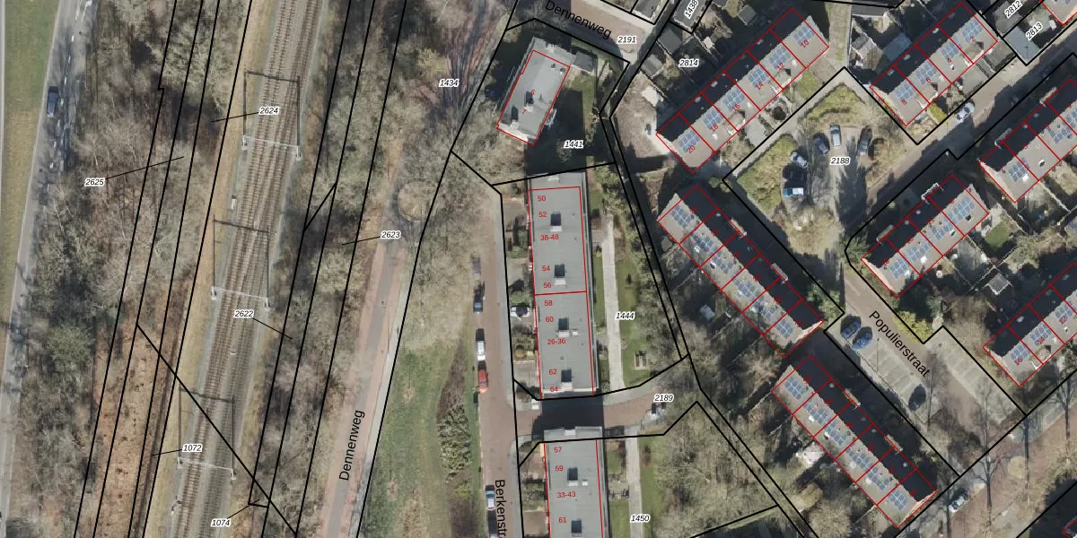 Het perceel waarop Berkenstraat 54 staat heeft een oppervlakte van 1098 m². Dit is een zeer groot perceel. De perceeloppervlakte wordt geregistreerd door het Kadaster. Gedetailleerde informatie over de maten van dit perceel kunt u vinden in het rapport Kadastrale kaart met maatvoering van Berkenstraat 54.
