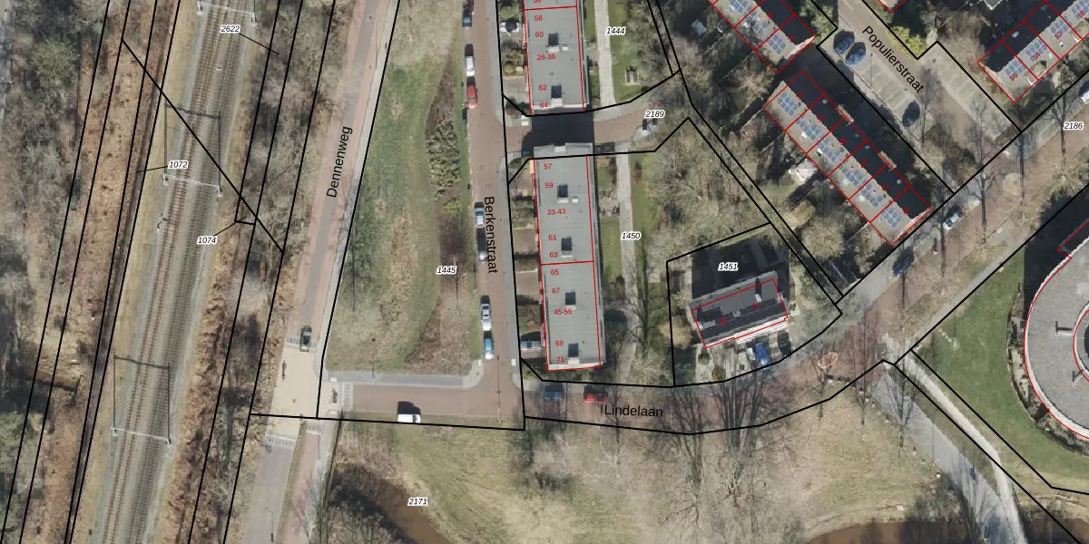 Het perceel waarop Berkenstraat 65 staat heeft een oppervlakte van 1465 m². Dit is een zeer groot perceel. De perceeloppervlakte wordt geregistreerd door het Kadaster. Gedetailleerde informatie over de maten van dit perceel kunt u vinden in het rapport Kadastrale kaart met maatvoering van Berkenstraat 65.