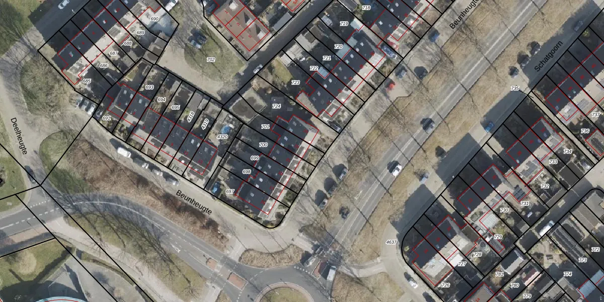 Het perceel waarop Beunheugte 23 staat heeft een oppervlakte van 201 m². Dit is een middelgroot perceel. De perceeloppervlakte wordt geregistreerd door het Kadaster. Gedetailleerde informatie over de maten van dit perceel kunt u vinden in het rapport Kadastrale kaart met maatvoering van Beunheugte 23.