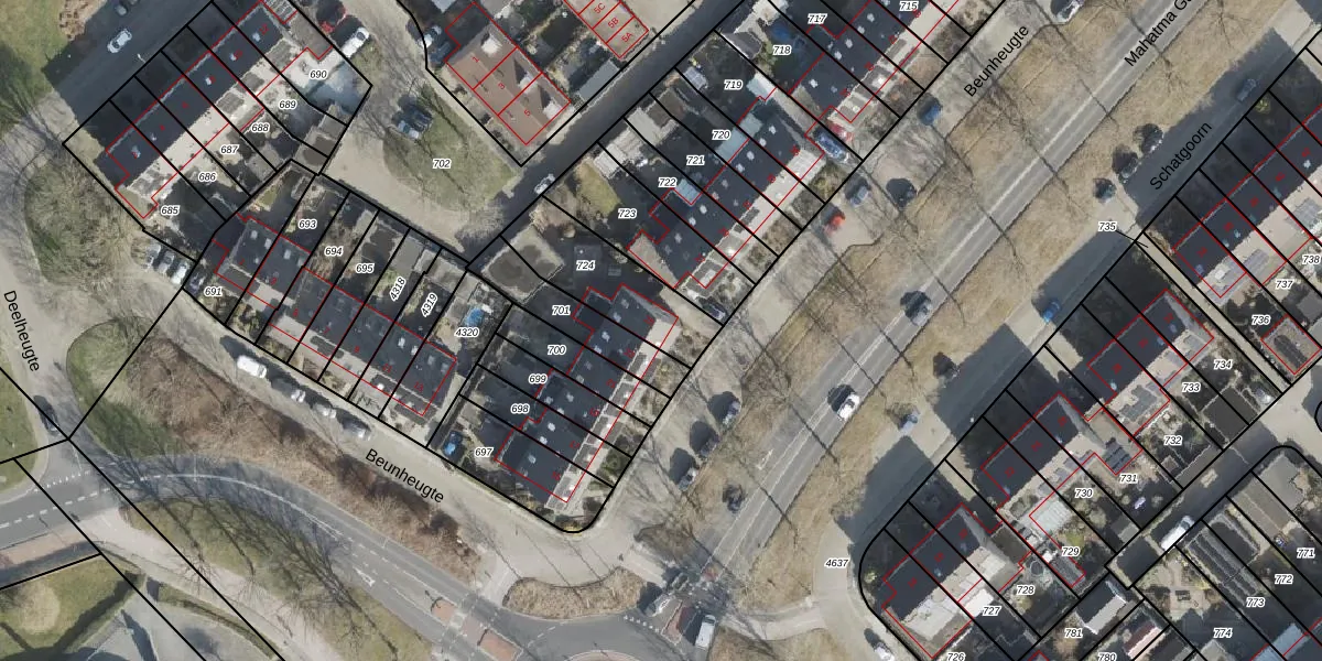 Het perceel waarop Beunheugte 25 staat heeft een oppervlakte van 321 m². Dit is een groot perceel. De perceeloppervlakte wordt geregistreerd door het Kadaster. Gedetailleerde informatie over de maten van dit perceel kunt u vinden in het rapport Kadastrale kaart met maatvoering van Beunheugte 25.