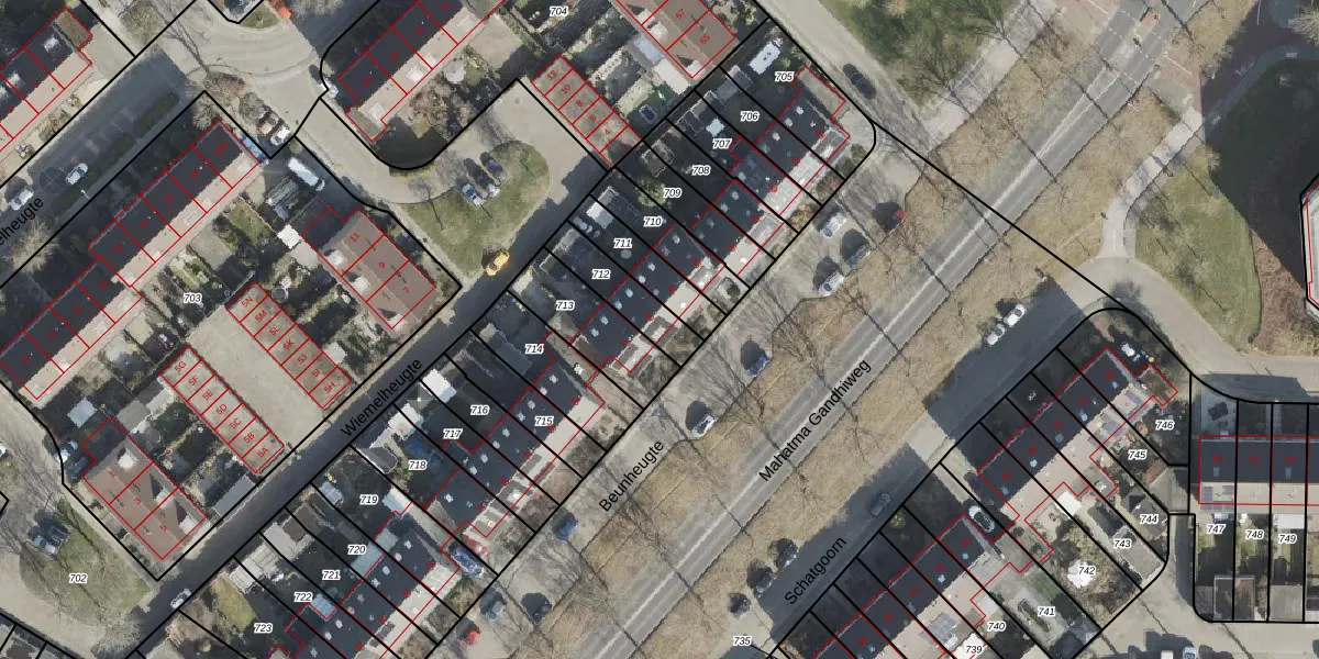 Gebruik de zoekbalk of klik op een perceel voor informatie over de adressen binnen dit perceel.