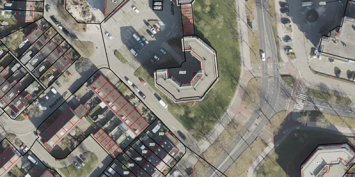 Het perceel waarop Beunheugte 72 staat heeft een oppervlakte van 774 m². Dit is een groot perceel. De perceeloppervlakte wordt geregistreerd door het Kadaster. Gedetailleerde informatie over de maten van dit perceel kunt u vinden in het rapport Kadastrale kaart met maatvoering van Beunheugte 72.