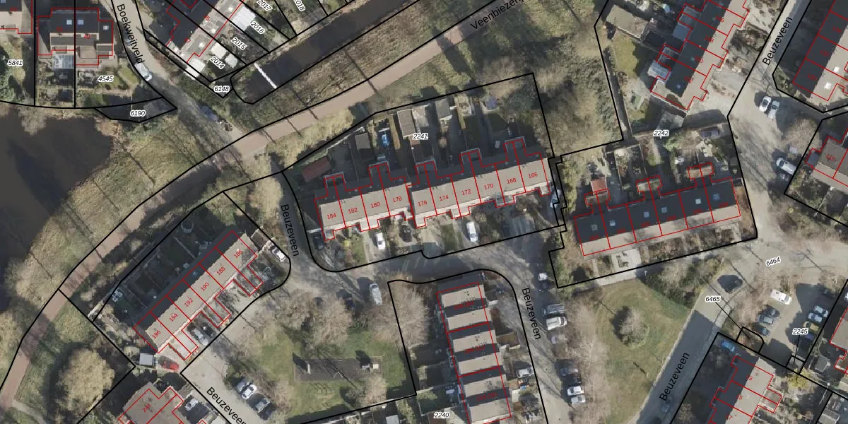 Het perceel waarop Beuzeveen 176 staat heeft een oppervlakte van 2960 m². Dit is een zeer groot perceel. De perceeloppervlakte wordt geregistreerd door het Kadaster. Gedetailleerde informatie over de maten van dit perceel kunt u vinden in het rapport Kadastrale kaart met maatvoering van Beuzeveen 176.