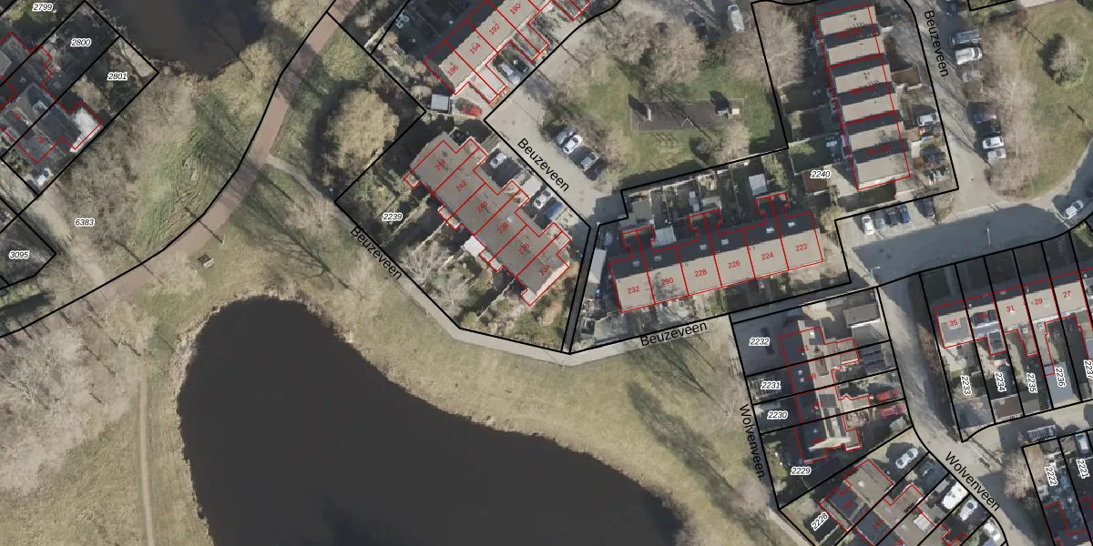 Het perceel waarop Beuzeveen 234 staat heeft een oppervlakte van 2292 m². Dit is een zeer groot perceel. De perceeloppervlakte wordt geregistreerd door het Kadaster. Gedetailleerde informatie over de maten van dit perceel kunt u vinden in het rapport Kadastrale kaart met maatvoering van Beuzeveen 234.