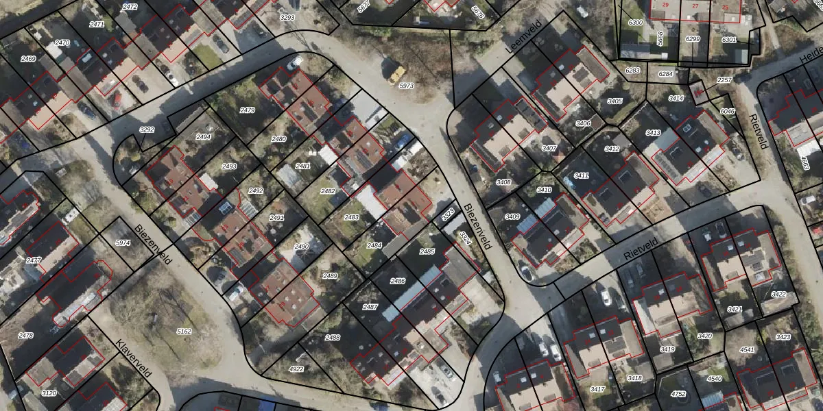 Gebruik de zoekbalk of klik op een perceel voor informatie over de adressen binnen dit perceel.