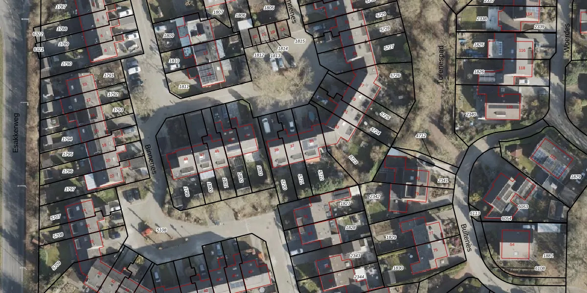 Het perceel waarop Binnenes 37 staat heeft een oppervlakte van 167 m². Dit is een middelgroot perceel. De perceeloppervlakte wordt geregistreerd door het Kadaster. Gedetailleerde informatie over de maten van dit perceel kunt u vinden in het rapport Kadastrale kaart met maatvoering van Binnenes 37.