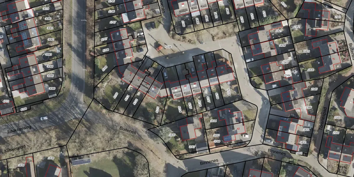 Het perceel waarop Binnenes 38 staat heeft een oppervlakte van 314 m². Dit is een groot perceel. De perceeloppervlakte wordt geregistreerd door het Kadaster. Gedetailleerde informatie over de maten van dit perceel kunt u vinden in het rapport Kadastrale kaart met maatvoering van Binnenes 38.