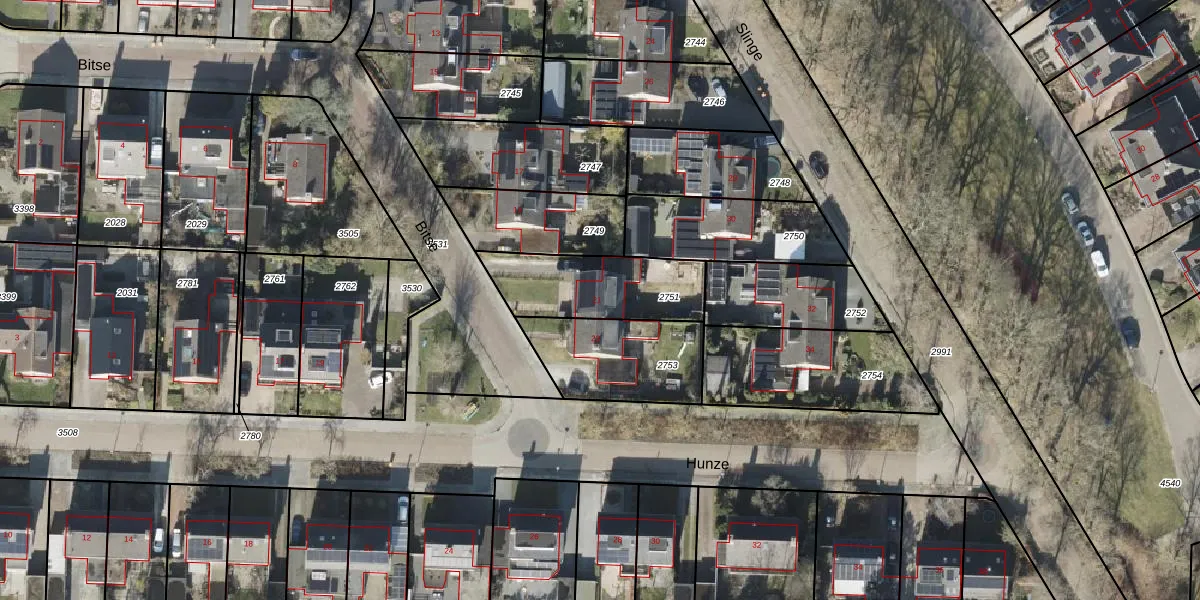 Het perceel waarop Bitse 21 staat heeft een oppervlakte van 365 m². Dit is een groot perceel. De perceeloppervlakte wordt geregistreerd door het Kadaster. Gedetailleerde informatie over de maten van dit perceel kunt u vinden in het rapport Kadastrale kaart met maatvoering van Bitse 21.